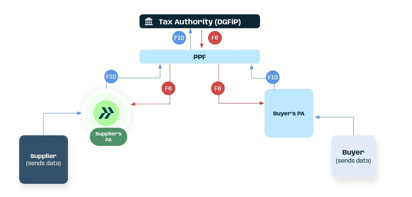For B2C and cross-border transactions, rather than exchanging a structured e-invoice with a buyer, businesses must transmit the relevant transaction data and, in certain cases, payment data to the PPF through their chosen PA. This reporting transmission takes place via the dedicated reporting channel known as Flow 10 (F10).