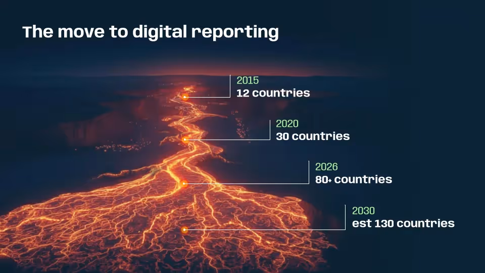 The evidence is in the numbers. In 2015, 12 countries had digital reporting requirements. By 2020, that was 30. Today it is over 80. By 2030, the estimate is 130.